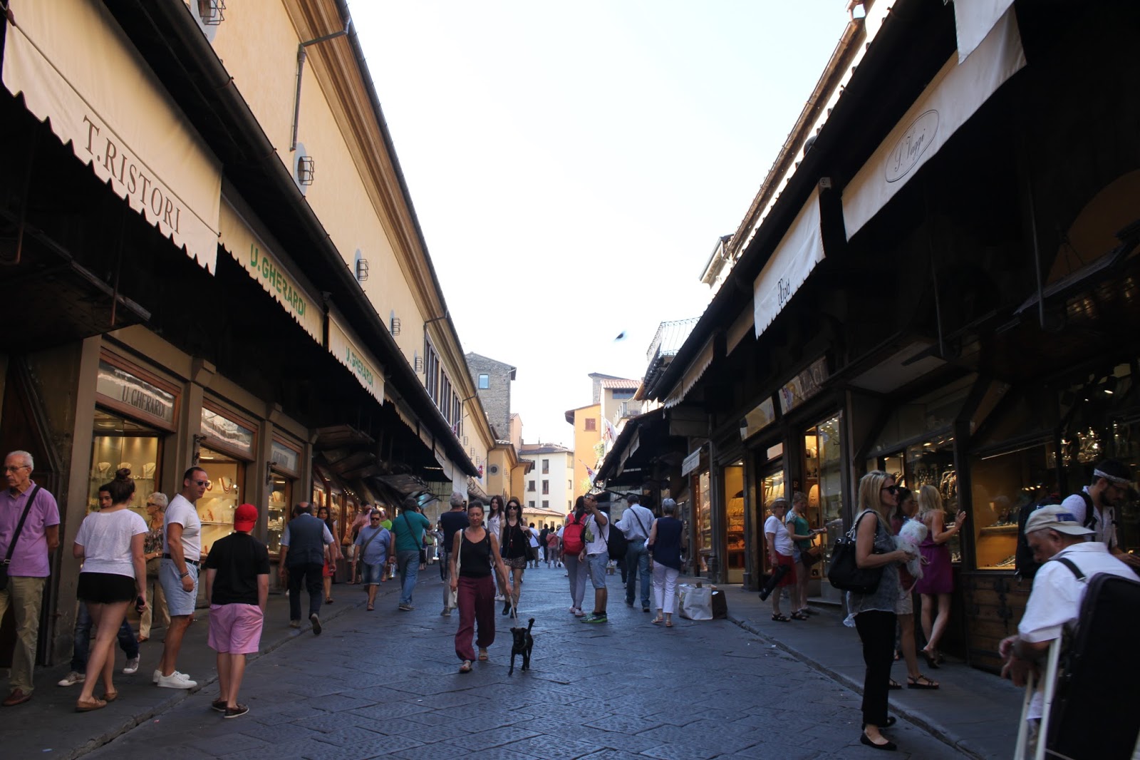 Su famosísimo Ponte Vecchio, Sobre él, un sinfín de Joyerías exponen a ambos lados sus artículos...